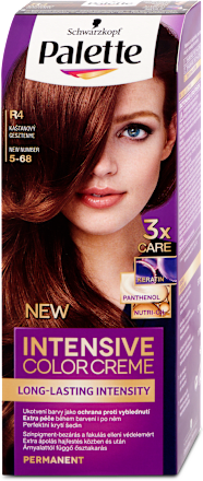 Palette Intensive Color Creme boja za kosu u nijansi 5-68 (R4) srednje kestenjasta daje Vašoj kosi savršenu i dugotrajnu boju. Zahvaljujući jedinstvenom sastavu, boja prodire duboko u vlasi, zadržava intenzivne pigmente i obezbeđuje dugotrajan sjaj uz maksimalno pokrivanje sede kose. Poseban efekat daju specijalno kombinovani mikropigmenti. Dodatna nega tokom i posle koloracije: formula i bogata maska sa sistemom za trostruku negu sadrži kompleks keratina, pantenol i nutri-ulje i intenzivno neguju kosu. I do 20% više nege u odnosu na prethodnu formulu će učiniti Vašu kosu gušćom, sjajnijom i mekšom. Doživite kremaste, raskošne i drugotrajne boje Palette Intensive Color Creme sa očaravajućim cvetnim mirisom.